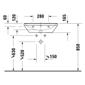 с переливом, с плоскостью под смеситель, глазуровка снизу, 600 мм